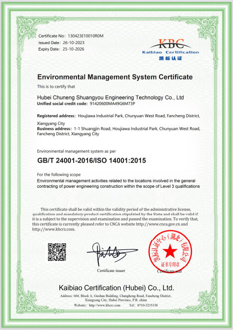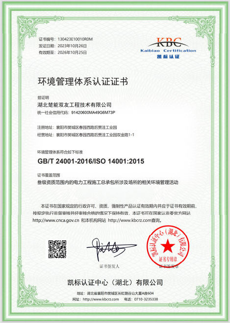 环境管理体系认证证书