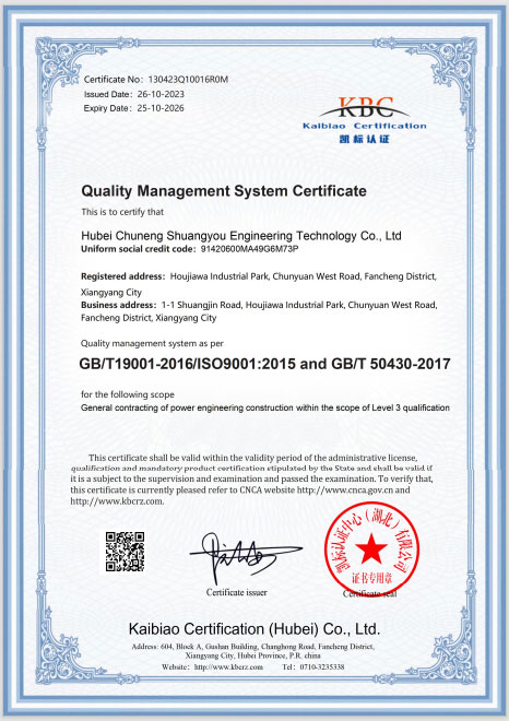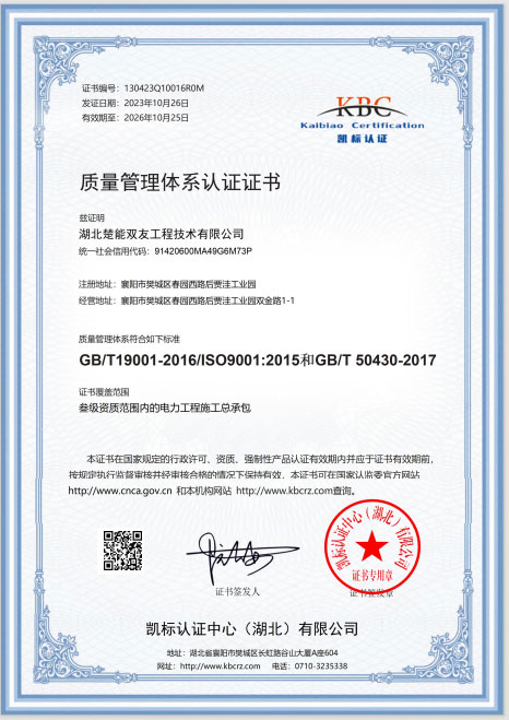 质量管理体系认证证书